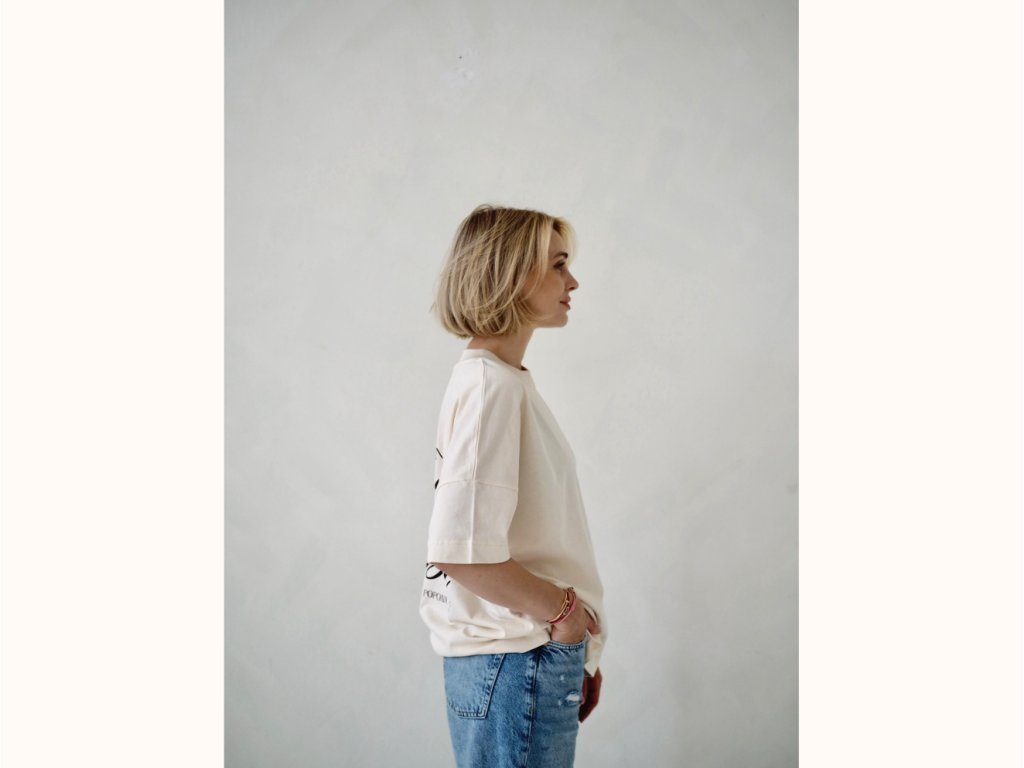 Tričko má volnější střih. Na fotografiích je velikost S na postavě vysoké 163 cm. Doporučujeme zvolit svou běžnou velikost pro pohodlné nošení, nebo o číslo menší, pokud preferujete přiléhavější siluetu.